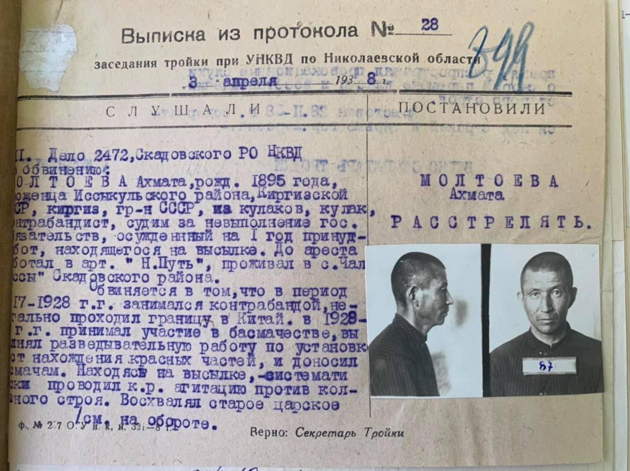 «Эсимде» изилдөөчүлөру тарабынан Киев шаарындагы СБУ архивинен алынган материалдардан.