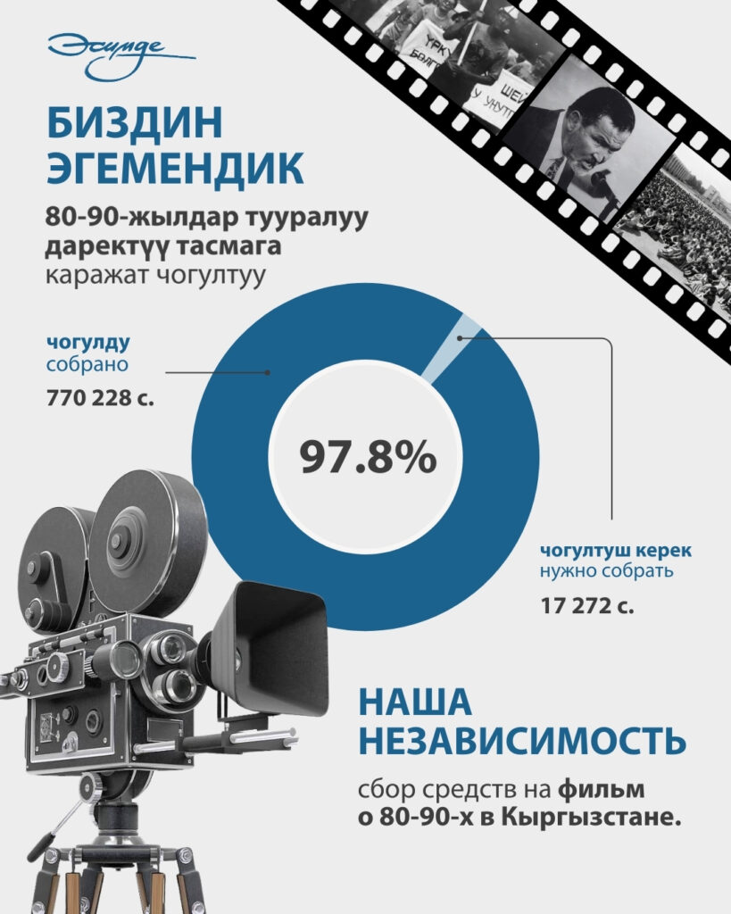 - «Ашар» кампаниясы – Кыргыз Республикасынын эгемендигине түрткү болгон доорду (85–91-жылдар) чагылдырган даректүү тасма тартуу үчүн каражат чогултууну максат кылган демилге.