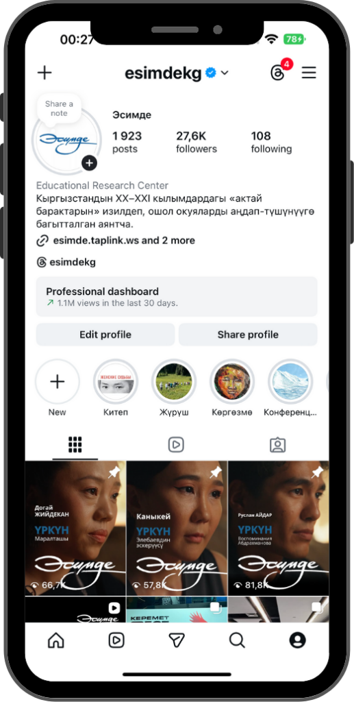 Тогуз жылдан бери «Эсимде» изилдөө аянтчасы Кыргызстандын XX–XXI кылымдардагы «актай барактарын» изилдеп, талдап келет.