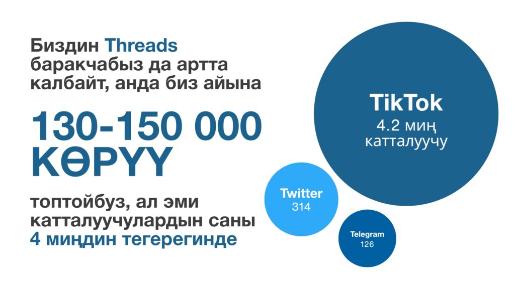 Албетте, жыл ичинде чыгарган бардык медиа өнүмдөрүбүздү толук көрсөтүү мүмкүн эмес. Ошентсе да, биз соцтармактардагы ишибизди чагылдырган жалпы статистиканы бөлүшө алабыз.
